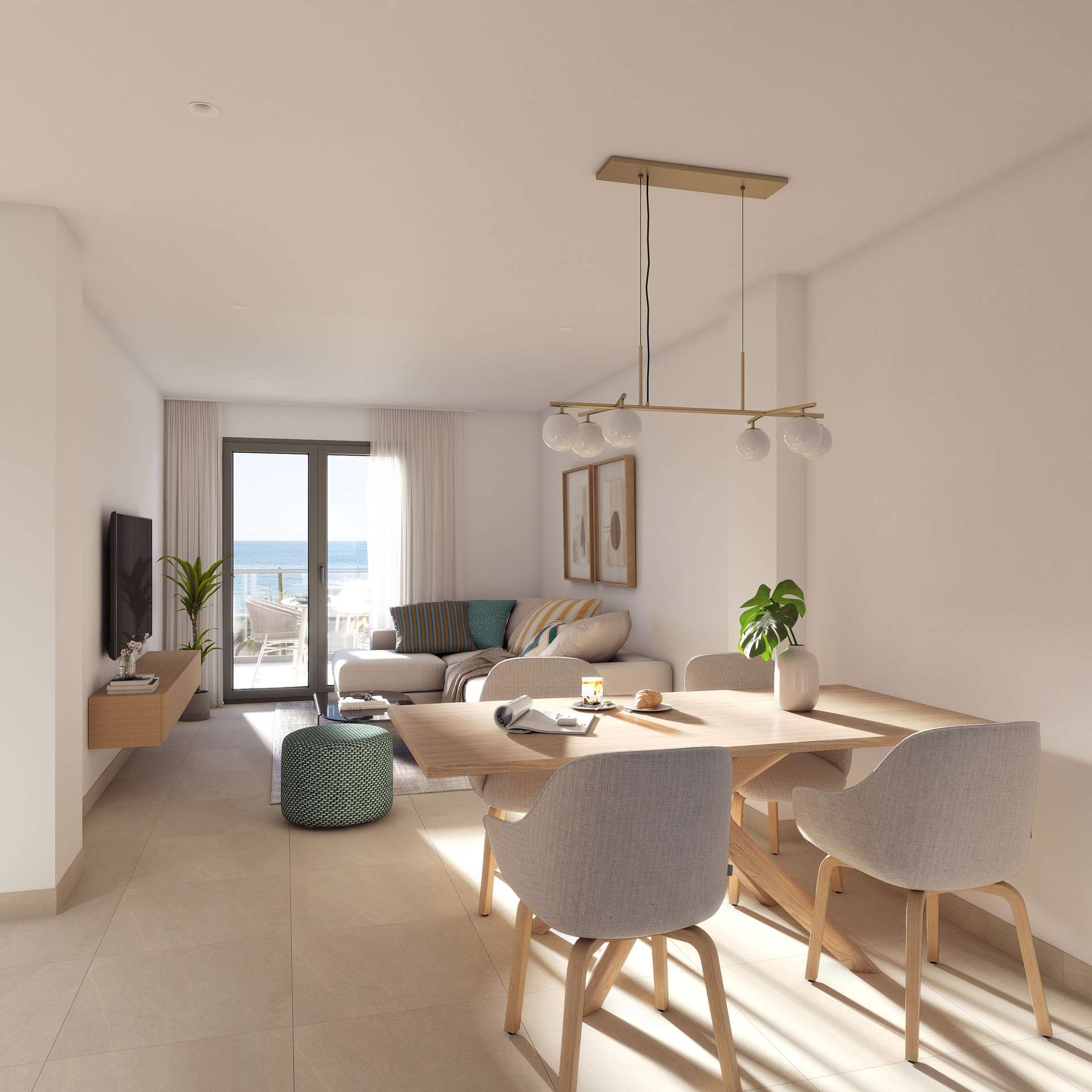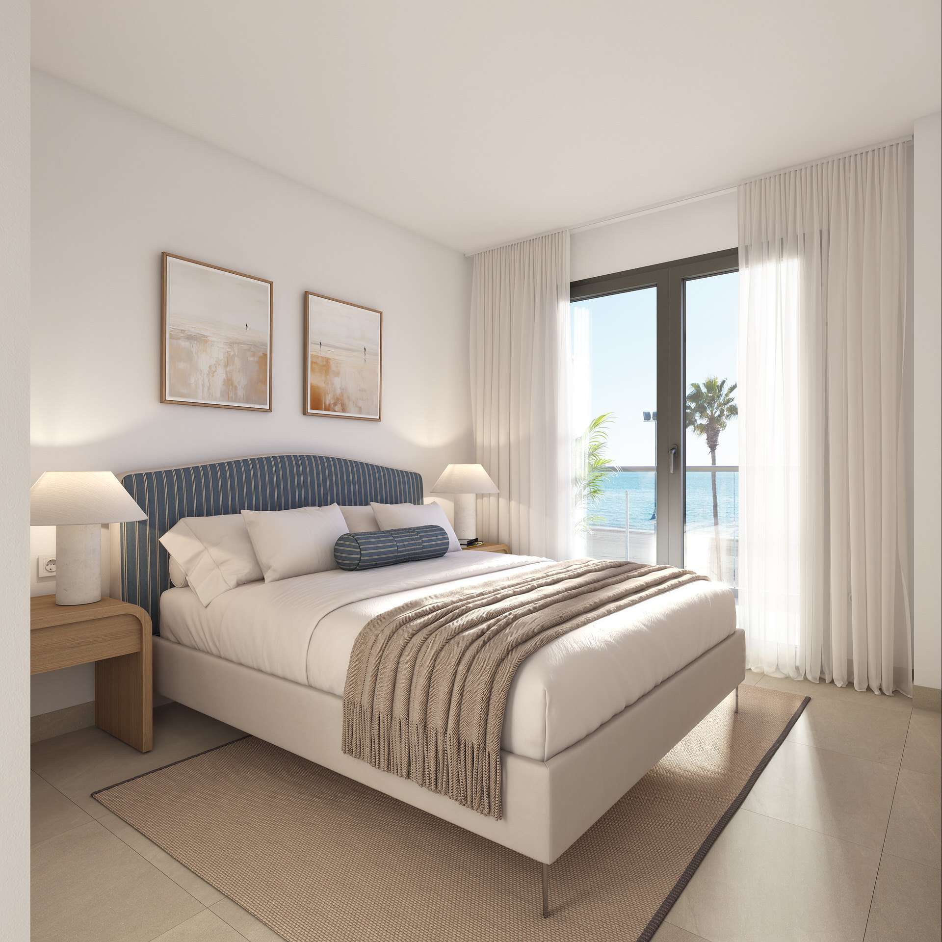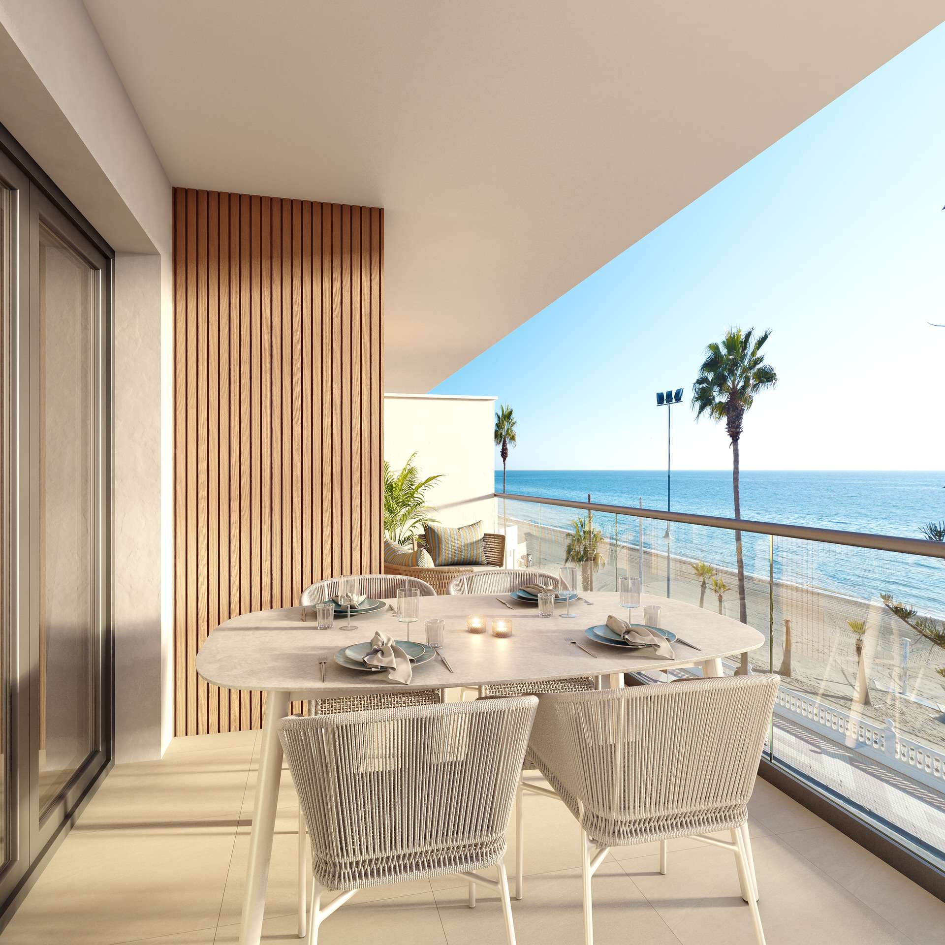 Grandes terrazas y soláriums privados en las plantas superiores, creando una perfecta conexión interior–exterior con vistas al mar.
